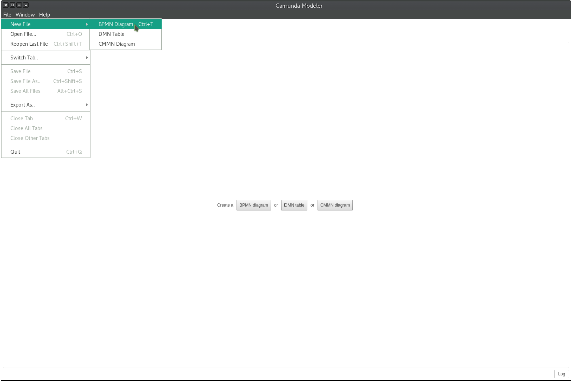 Create a new BPMN diagram by clicking File > New File > BPMN Diagram.