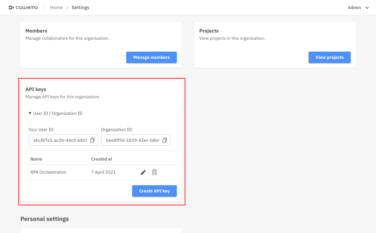 - Open the “User ID / Organization ID” panel to retrieve your User ID (which is not your email address).
