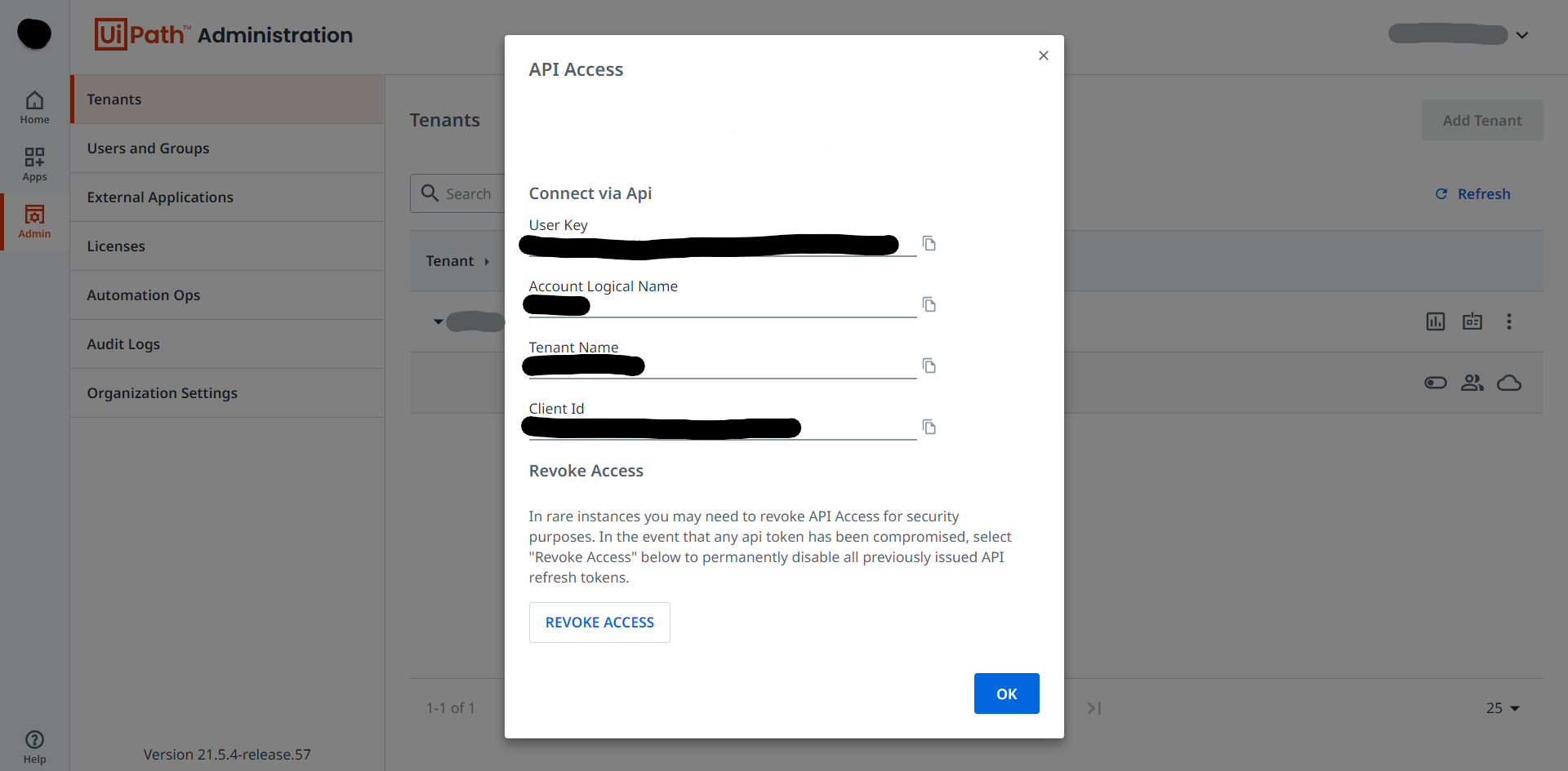 - Open the ‘Admin’ view of the UiPath Orchestrator Portal