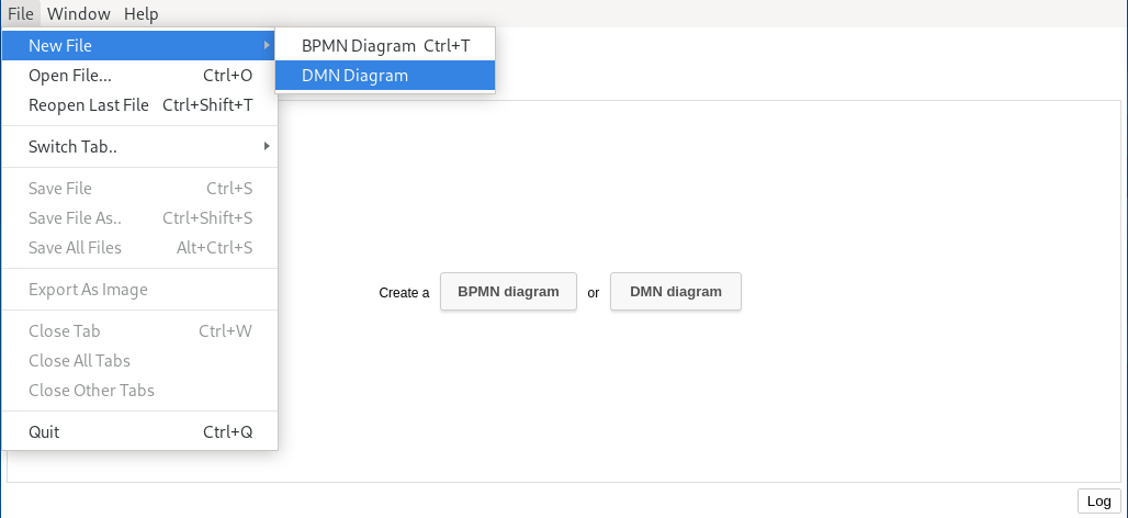 Create a new DMN diagram by clicking File > New File > DMN Diagram.