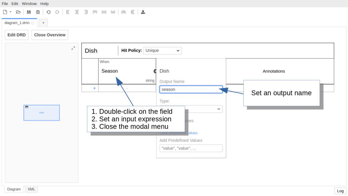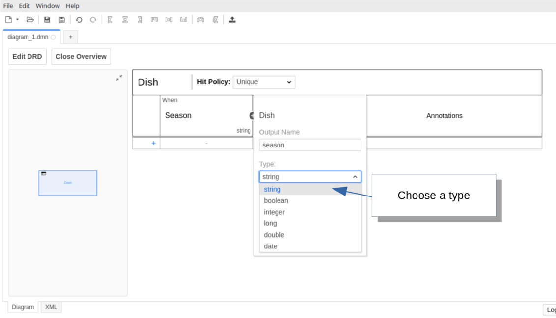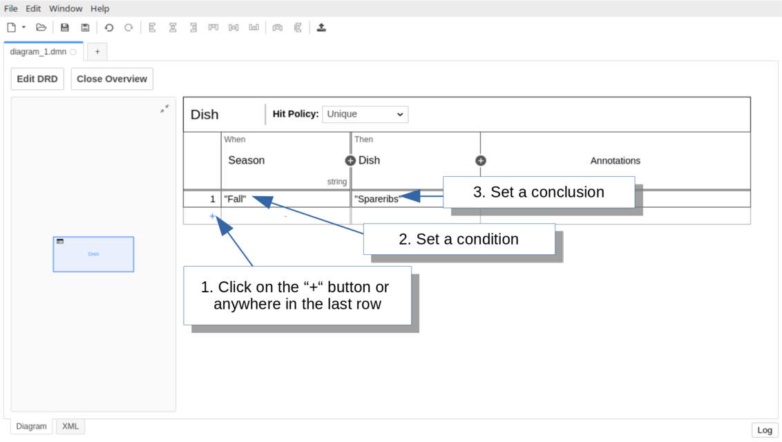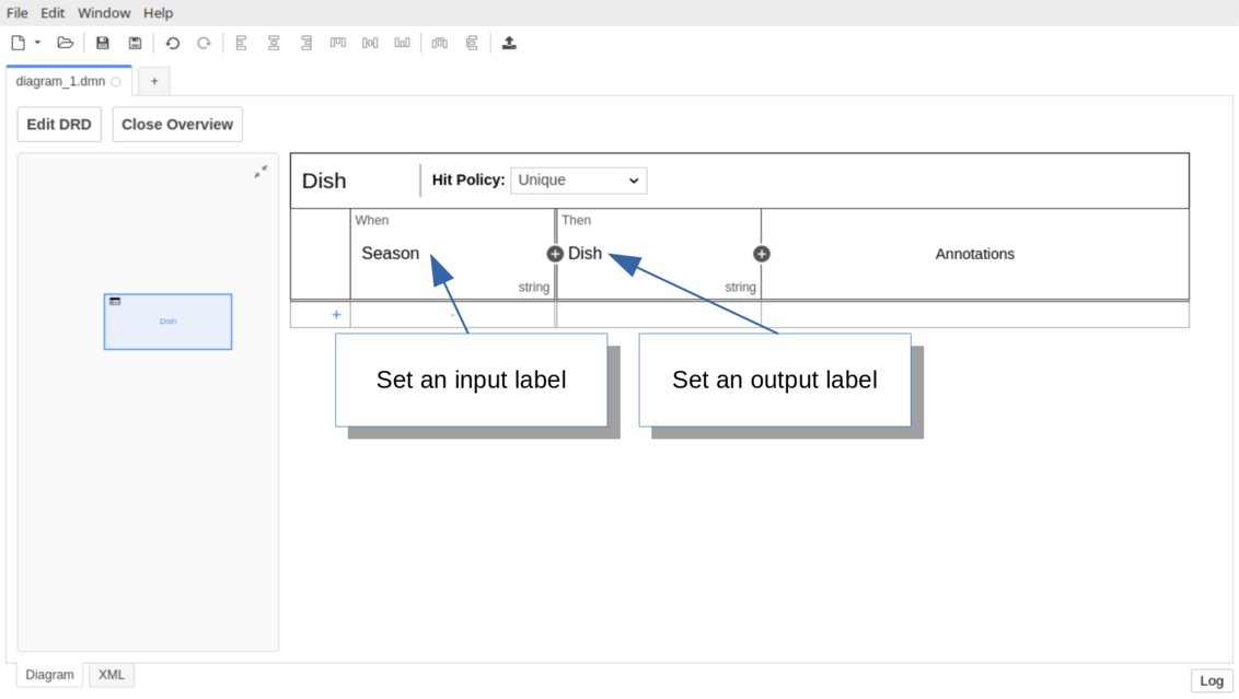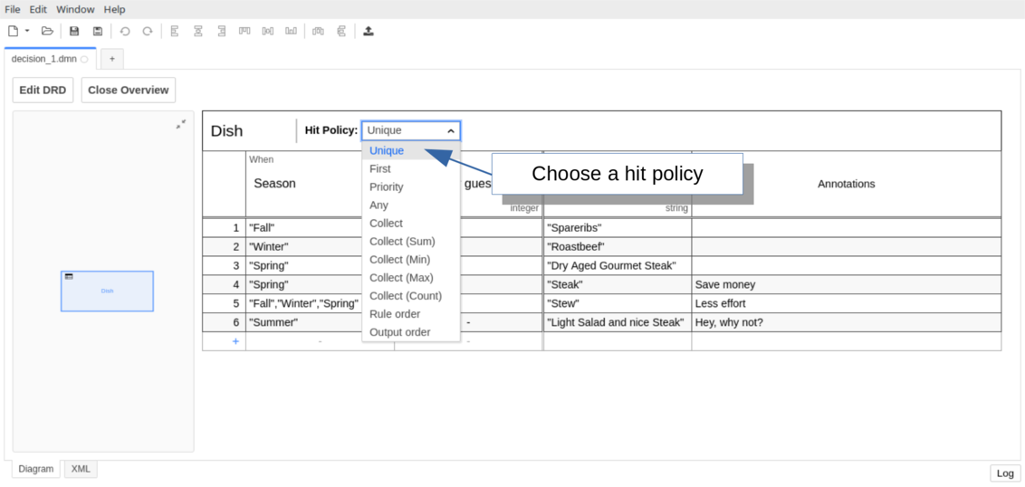 Click on the “Hit Policy” dropdown and choose the hit policy “UNIQUE”.