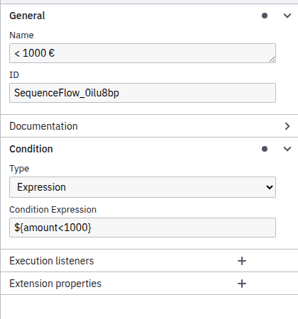 Sequence Flow after the Gateway on the canvas. This will update the selection in the properties panel.