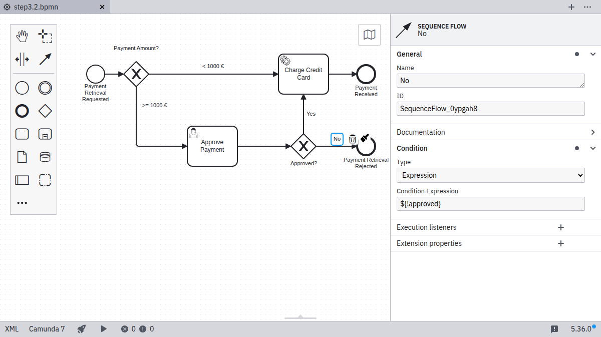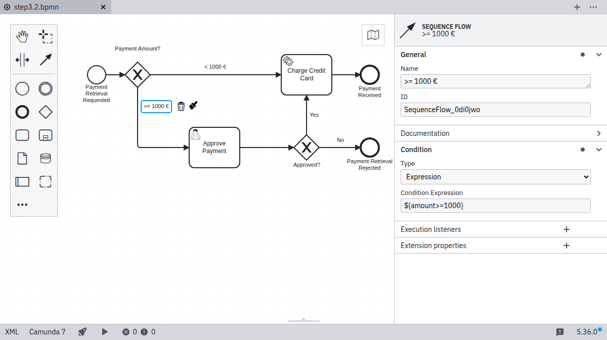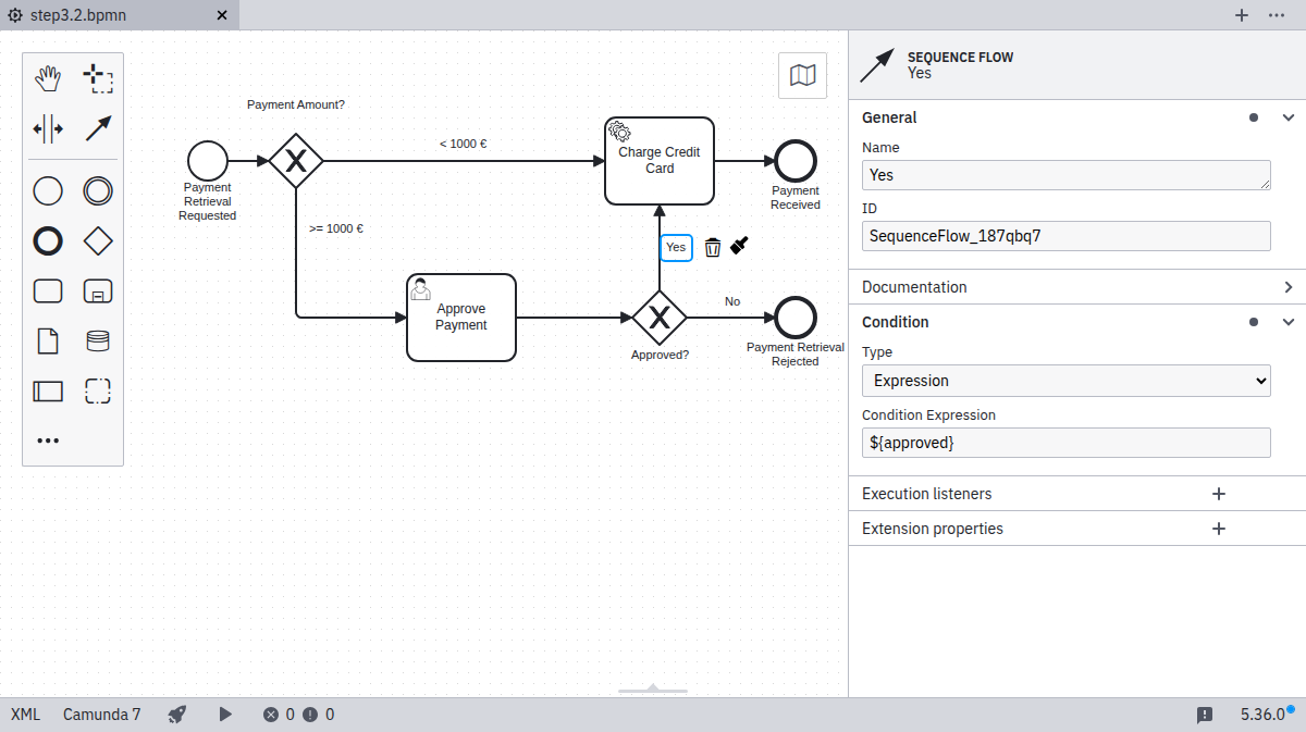 In this section, you’ll learn how to make your process more dynamic by using BPMN 2.0 Exclusive Gateways.