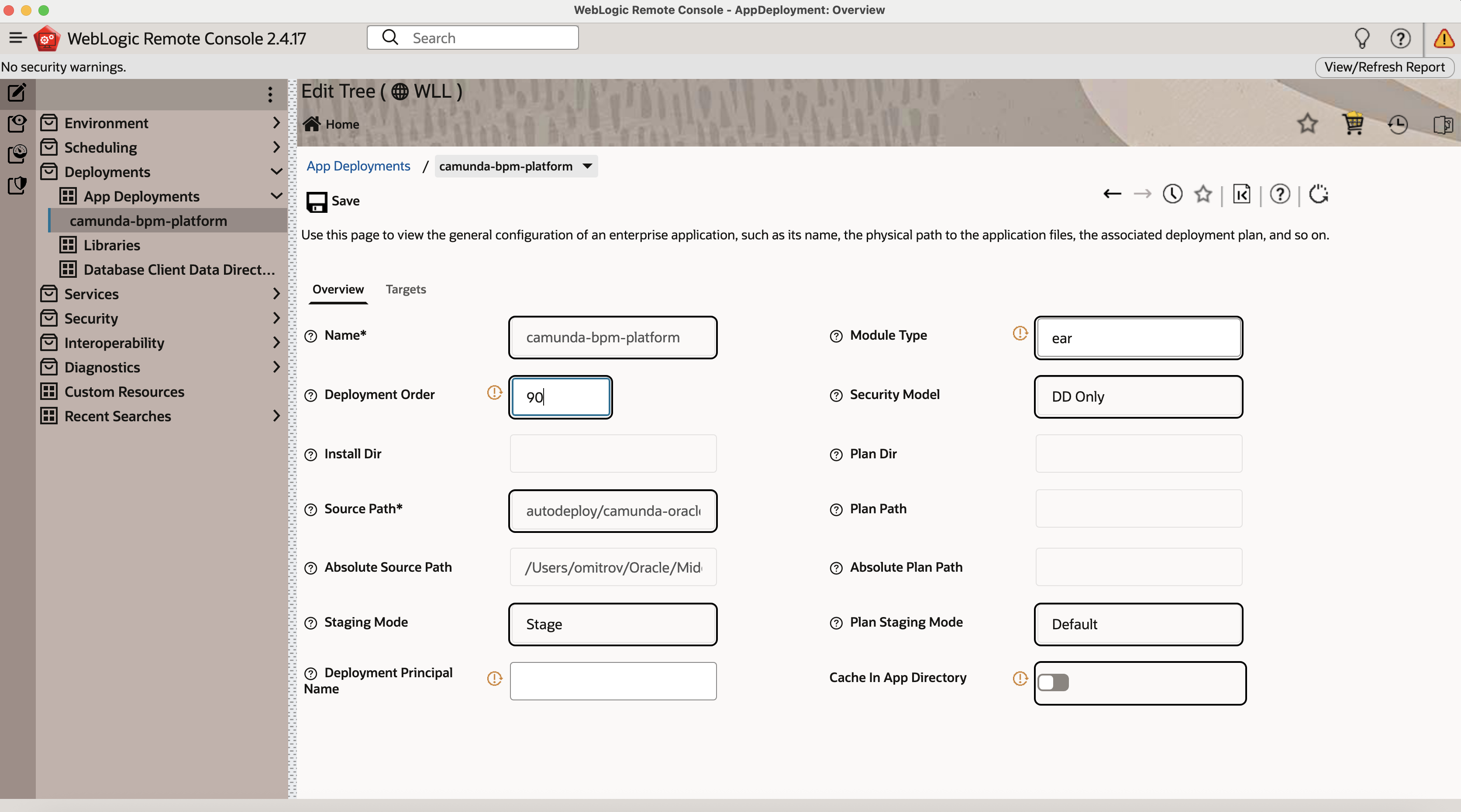 fluxnova-oracle-weblogic-ear-$PLATFORM_VERSION.earEAR file. - Configure the deployment order of