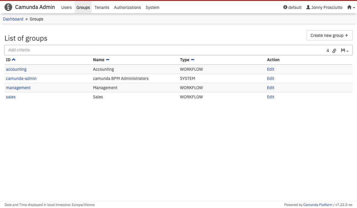 The Groups menu allows you to add, edit and delete user groups. Besides that you can view the members of groups