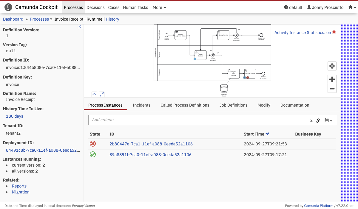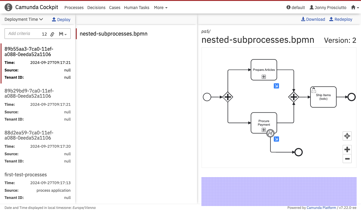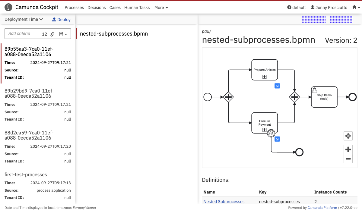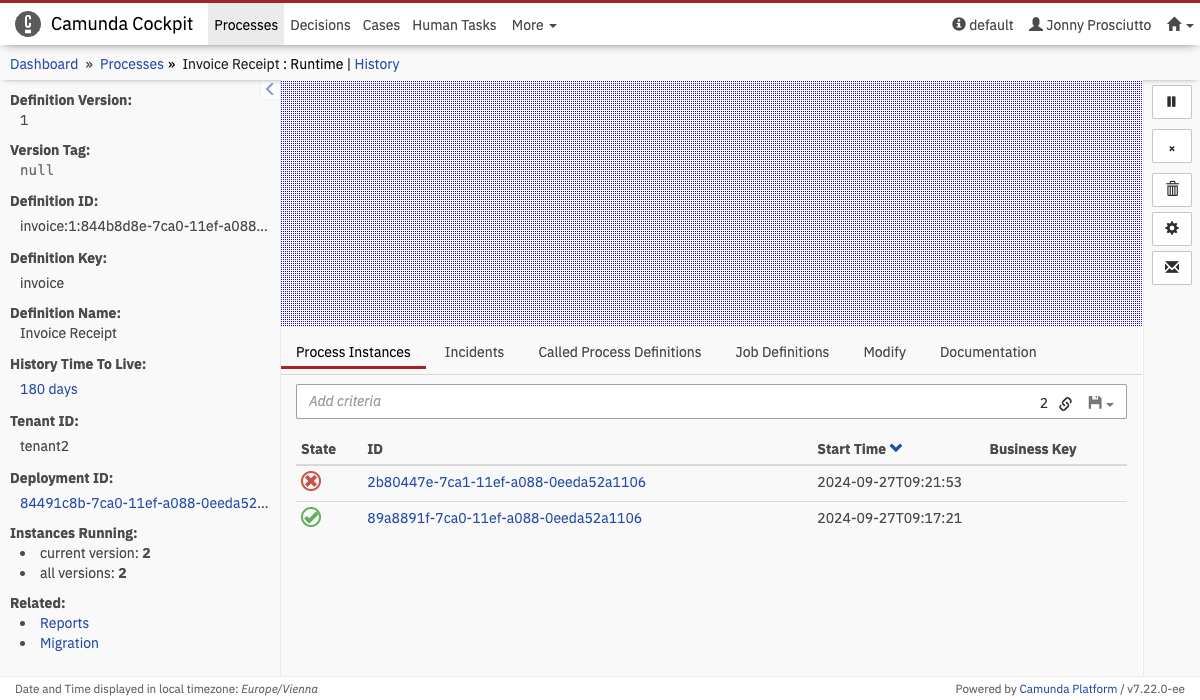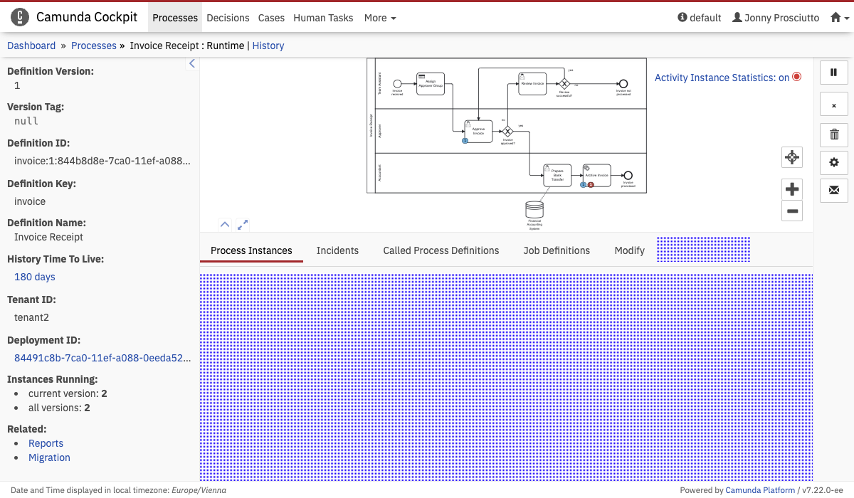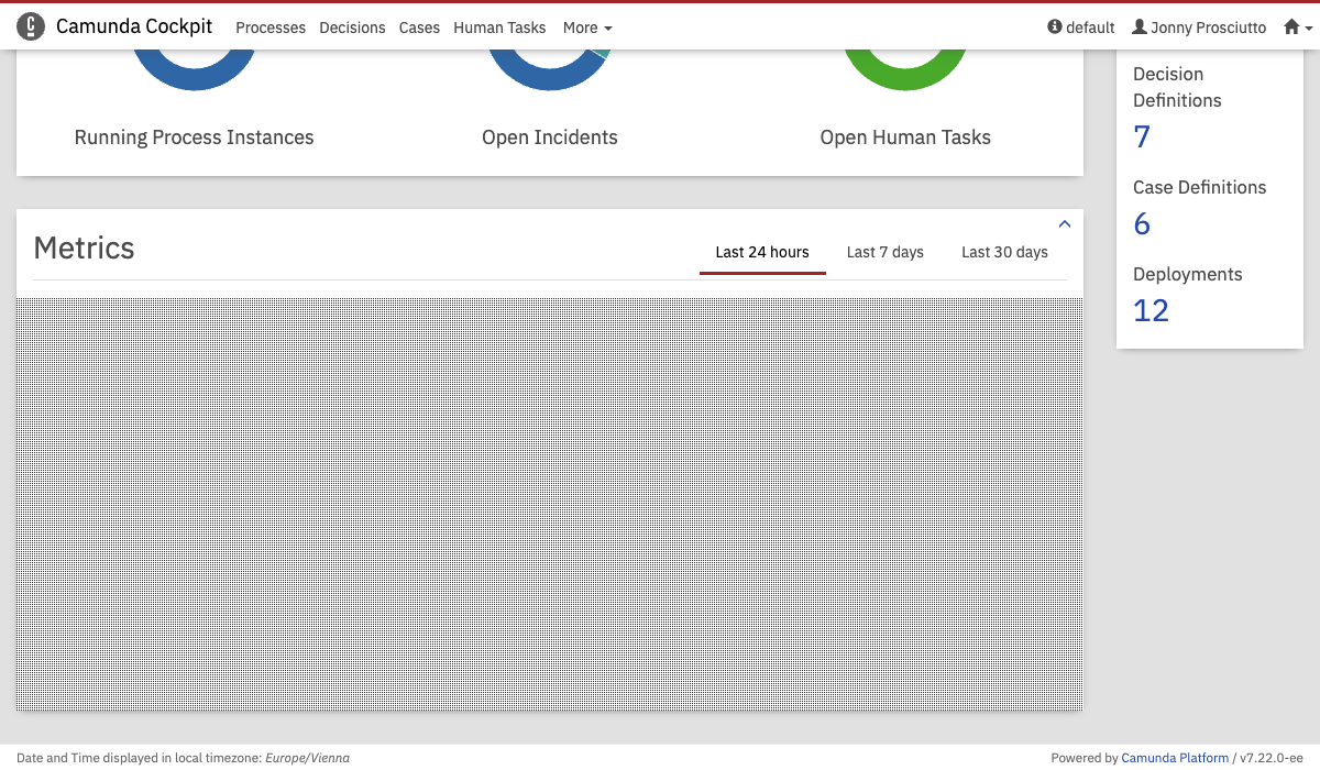 Cockpit defines a plugin concept to add own functionality without being forced to extend or hack the Cockpit web application. You can add plugins at various plugin points, e.g., the processes dashboard as shown in the following example: